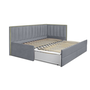 Порше с дополнительным спальным местом в современном исполнении представляет собой симбиоз всех достоинств кроватей. Это элегантная модель с декоративным изголовьем, украсит ваш дом и подчеркнет достоинства вашего интерьера. Имеется дополнительное выкатное ортопедическое основание, и ящик для дополнительного матраса. Хорошее решение для вашего дома. Задняя спинка обшита основной тканью. Спальное место 900×2000 мм