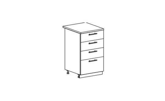 Шкаф нижний с 4 ящиками шириной 50 см. Цвет корпуса белый.