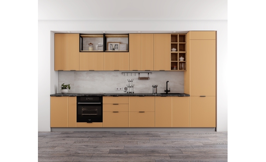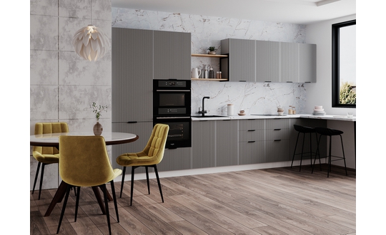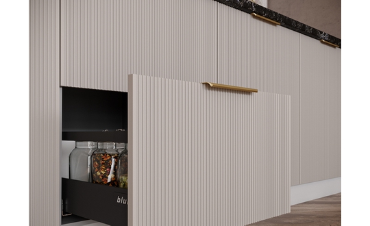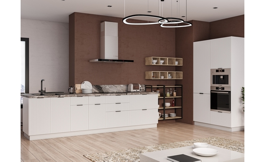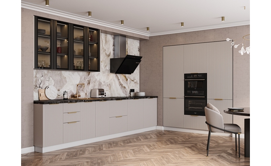 Коллекция «Мелисса» — это интригующая симфония изысканности и функциональности, созданная для тех, кто стремится к непревзойденной элегантности в своей кухне. Каждая деталь этой коллекции вдохновлена гармонией форм и прекрасно сбалансирована. Утонченная вертикальная рельефная фрезеровка фасадов придает им неповторимую глубину и изысканность, создавая зрительное впечатление произведения искусства.