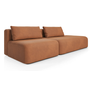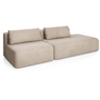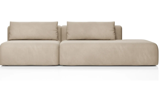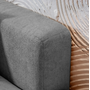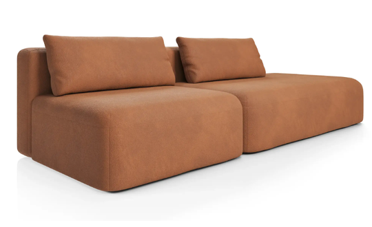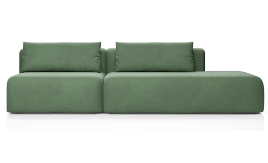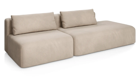 Дизайн дивана выполнен в современном стиле, который подойдет для интерьеров в стиле джапанди и минимализм. Округлые формы и широкие подлокотники создают ощущение уюта и комфорта. Вытянутые в горизонталь летящие силуэты дивана и асимметрия придают ему современное обличие.